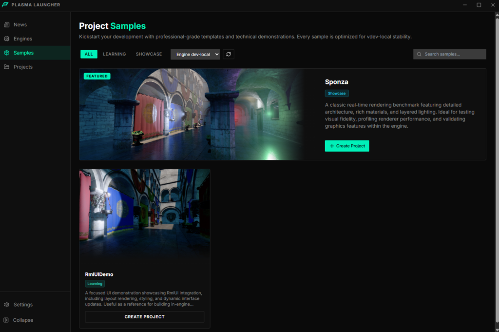 Downloading repositories directly through the launcher is now fully operational! Whether you’re pulling down new samples or user created project, this feature simplifies getting started with the engine and allows you to only install what you need.